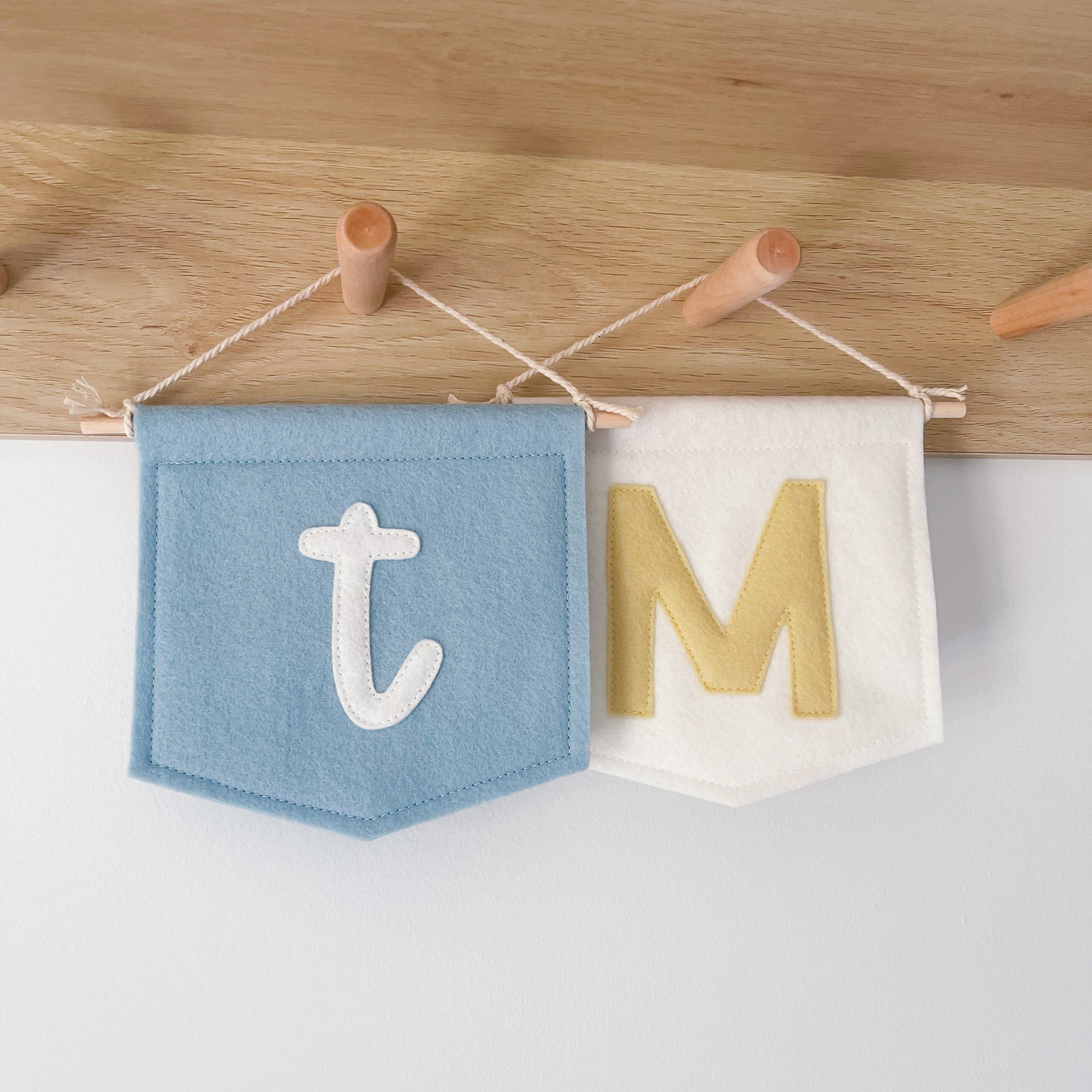 Custom mini felt initial flag, perfect for kids room, baby's nursery or playroom.