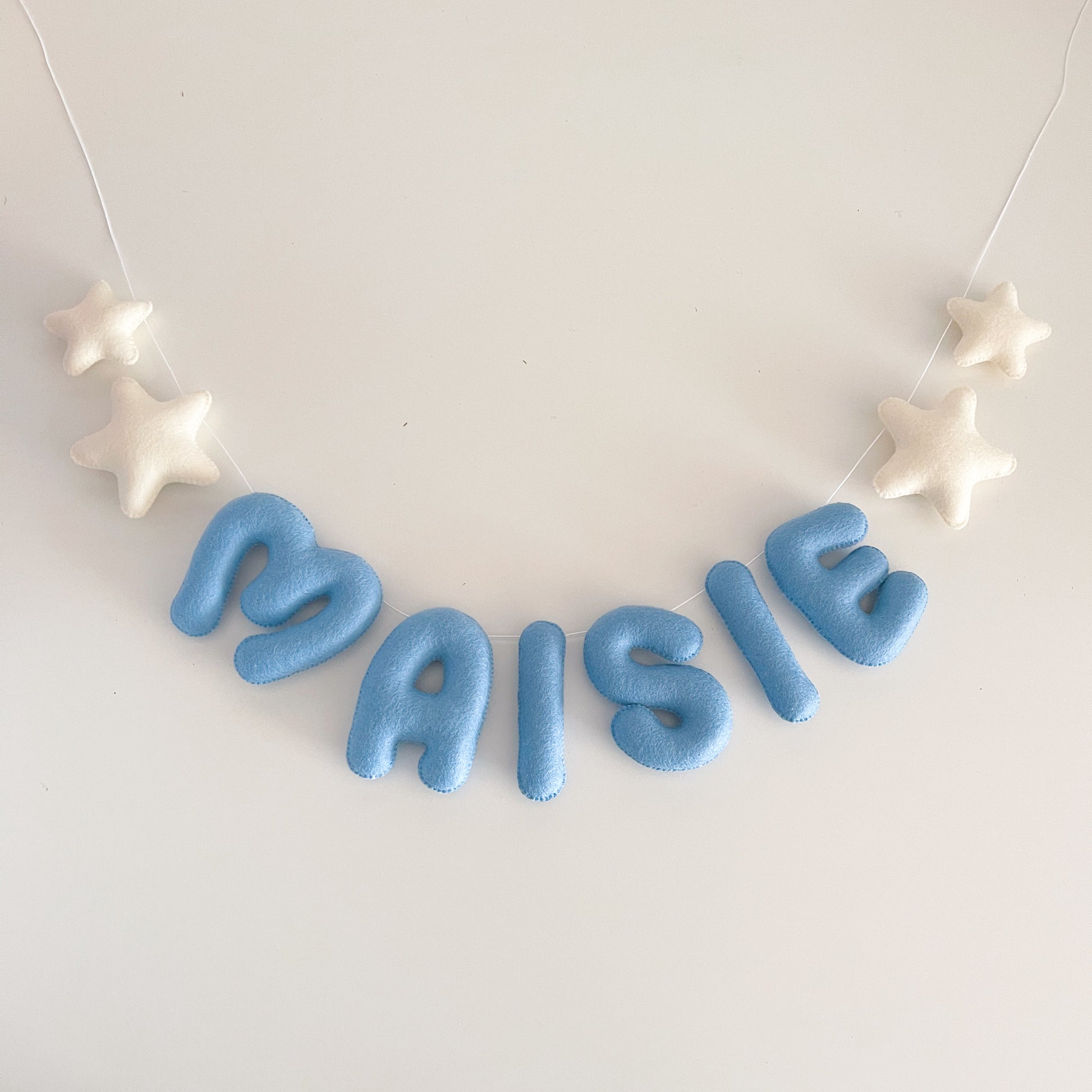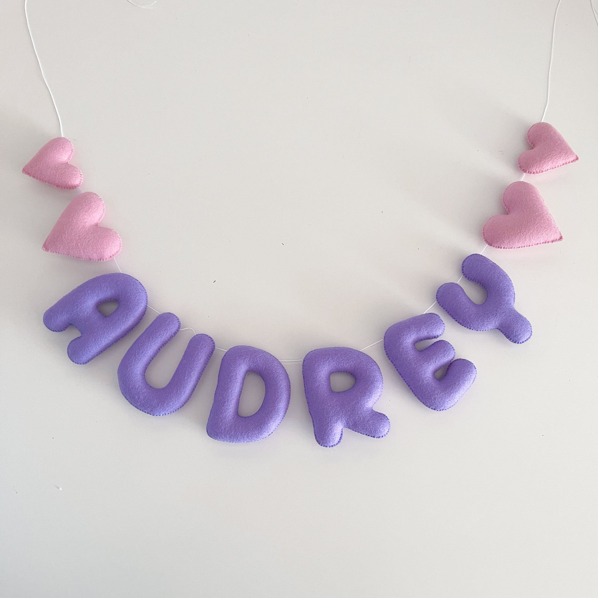 This name garland includes 2 felt shapes at each end.