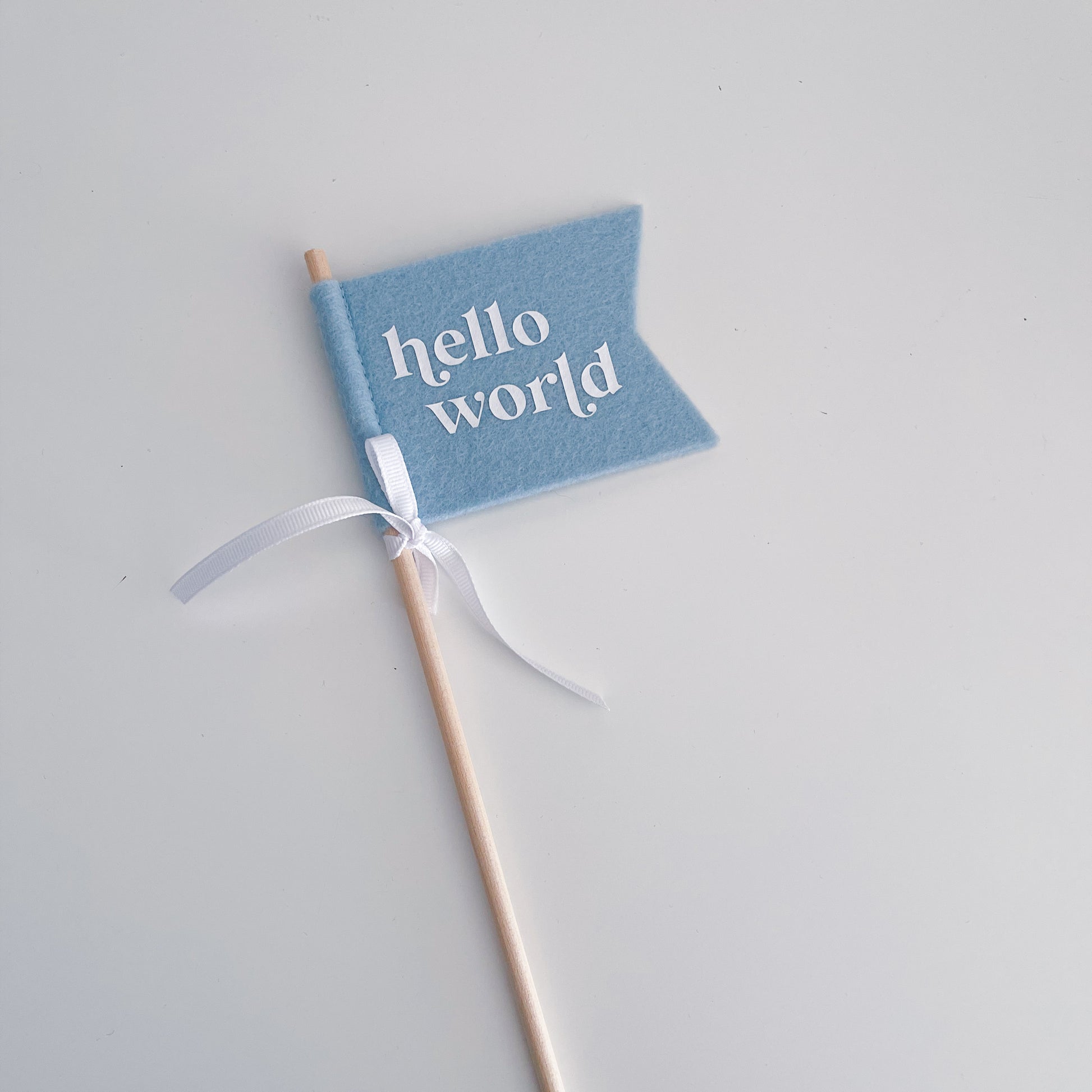 Flag wand - light blue ‘hello world’