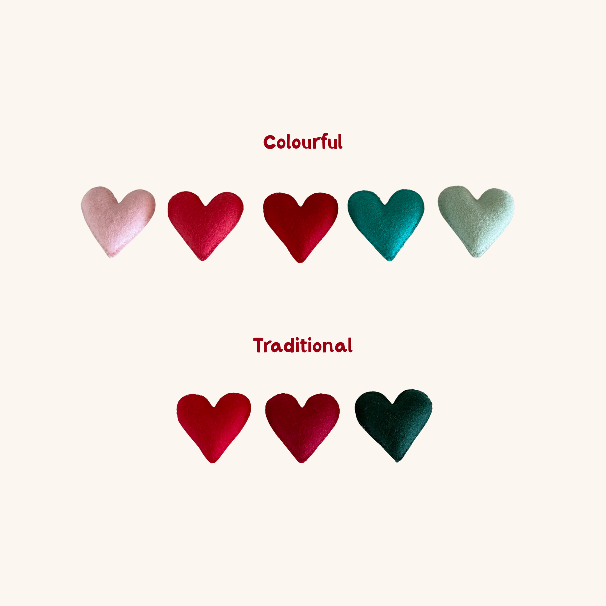 2 colour options are available - traditional (red, crimson & dark green) or colourful (barely pink, strawberry, red, teal & celadon).